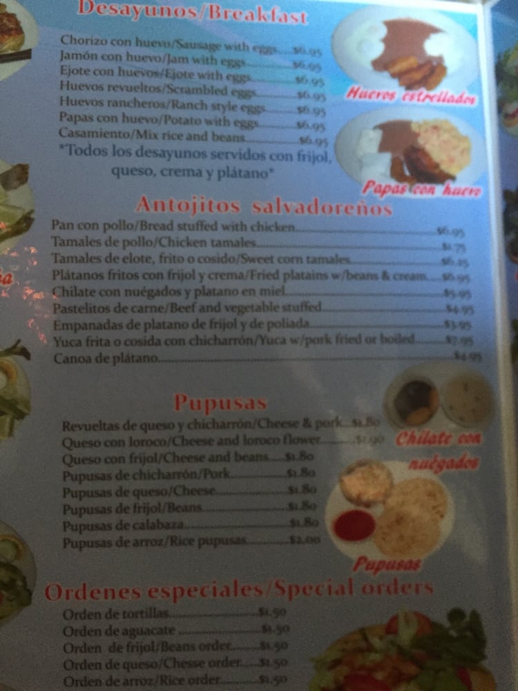 - Must-try dishes: Shrimp pupusas, Calabaza con Queso, Frijol con Queso